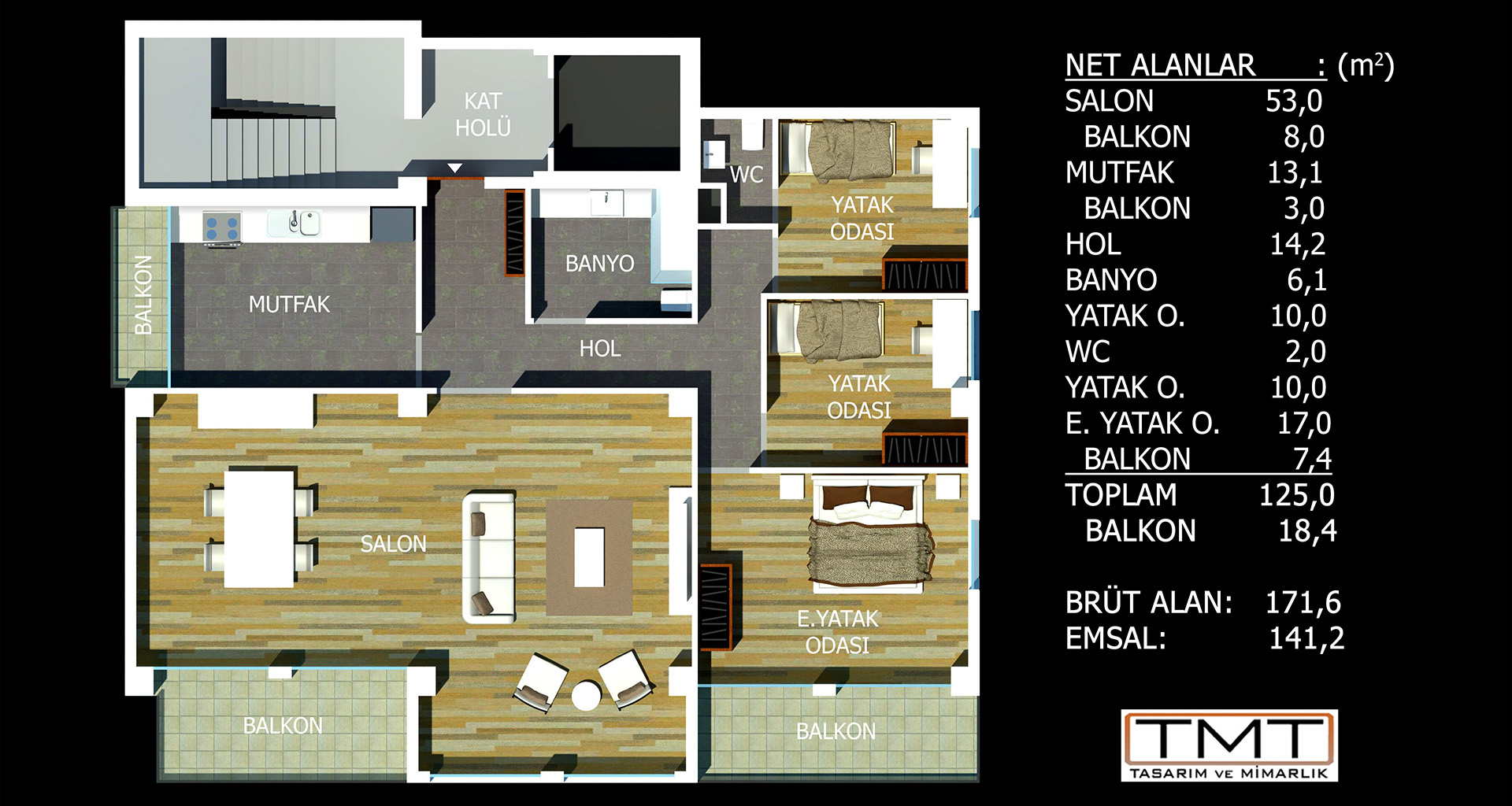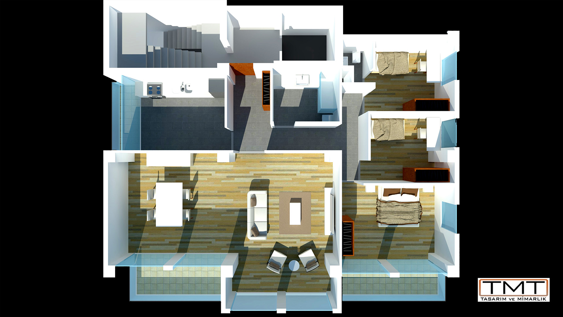 Pazarlama için üretilen görsellerden bir örnek; 3 Boyutlu Plan Görünümü